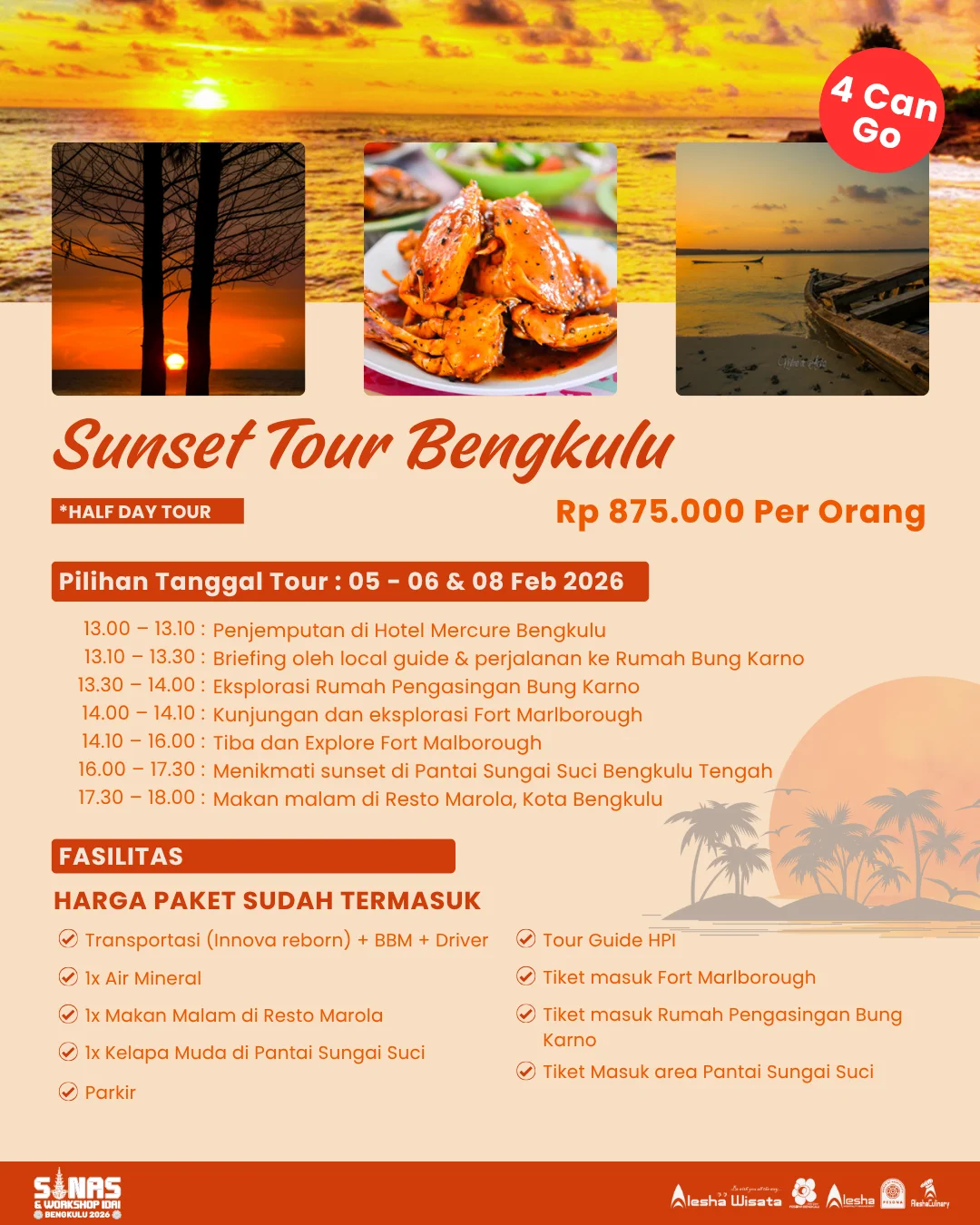 13.00 – 18.00 WIB - Rp 875.000,- /pax